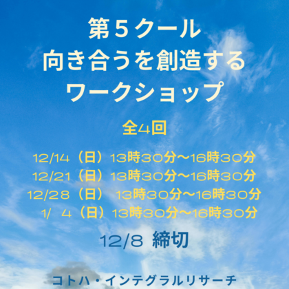 【お申込期間延長12/11まで】第5クール〜向き合うを創造するワークショップ~開催